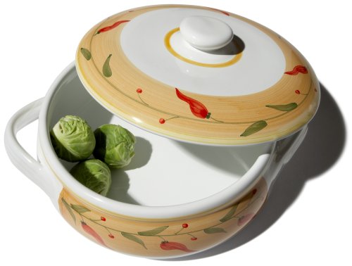 | 0 of 1 people found the following review helpful By J Craig "J Craig" (Tucson, AZ) - See all my reviews Amazon Verified Purchase This review is from: Caleca Chili Peppers Covered Casserole Dish (Kitchen) I ordered several sets and accompanying serving pieces. All are beautiful, substantial and look great on my table in my Southwest decorated home. |